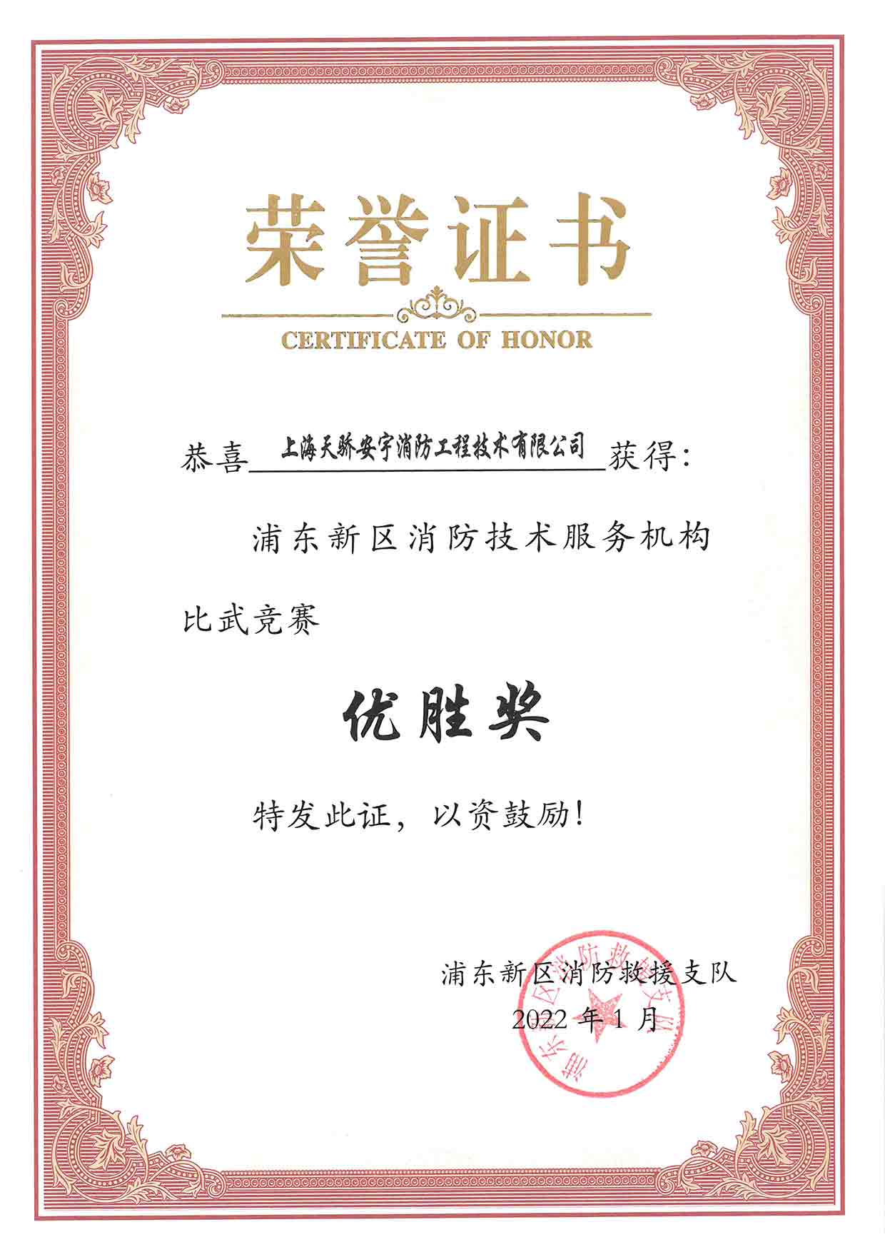 浦東新區(qū)消防技術(shù)服務(wù)機(jī)構(gòu)比武優(yōu)勝獎(jiǎng)